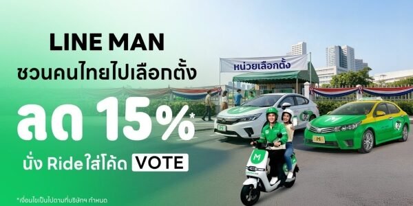LINE MAN RIDE ชวนคนไทยออกไปใช้สิทธิเลือกตั้งปี 69 แจกส่วนลดค่าเดินทางสูงสุด 50 บาท*