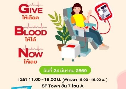 เอ็ม บี เค เซ็นเตอร์ ชวนร่วมบริจาคโลหิต อวัยวะและดวงตา 24 มีนาคมนี้ ชั้น 7 SFTOWN “Give Blood Now ให้เลือด ให้ได้ ให้เลย”