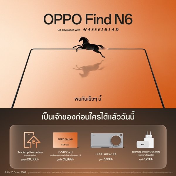 OPPO สร้างความตื่นเต้นให้กับตลาดสมาร์ตโฟนอีกครั้ง พร้อมปล่อยทีเซอร์เตรียมเปิดตัวสมาร์ตโฟนจอพับรุ่นใหม่ OPPO Find N6 ที่มาพร้อมสโลแกน “เรียบกว่า อิสระกว่า ทรงพลังทุกมิติ”
