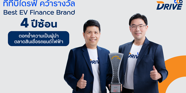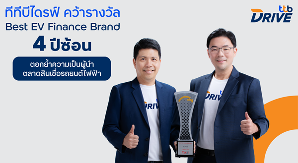 ทีทีบีไดรฟ์ ครองตำแหน่งผู้นำตลาดสินเชื่อรถยนต์ไฟฟ้าอย่างต่อเนื่อง ด้วยการคว้ารางวัล Best EV Finance Brand เป็นปีที่ 4 ติดต่อกัน สะท้อนถึงความแข็งแกร่งและความไว้วางใจ