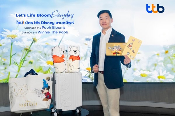 สำหรับลวดลายคอลเลกชันใหม่ ทีทีบีนำ “หมีพูห์” ตัวละครสีเหลืองกับโถน้ำผึ้งคู่ใจและผองเพื่อนจากป่าร้อยเอเคอร์ที่กำลังเฉลิมฉลองครบรอบ 100 ปี โดดเด่นในภาพลักษณ์ที่สดใส เป็นที่ชื่นชอบ ครองใจและมีฐานแฟนเพิ่มขึ้นอย่างต่อเนื่องทั่วโลก มาอวดโฉมดีไซน์ใหม่บนหน้าบัตรที่มีให้เลือกทั้งหน้าบัตรเครดิต ttb Disney ลาย “Pooh Blooms” และ บัตรเดบิต ttb all free Disney ลาย “Winnie the Pooh” พร้อม e-Slip จำนวน 3 ลาย ดีไซน์น่ารักสดใสเพื่อมอบประสบการณ์อัศจรรย์โอนเงินได้ฟินยิ่งกว่าเดิม และคุ้มค่าเหนือกว่าใครกับสิทธิประโยชน์ โปรโมชันพิเศษที่ครอบคลุมการใช้จ่ายในชีวิตประจำวันสำหรับลูกค้าใหม่และผู้ใช้บัตรปัจจุบัน โดยคาดหวังว่าจะเป็นอีกหนึ่งปัจจัยที่ผลักดันยอดผู้ใช้บัตรของทีทีบีให้เติบโตต่อเนื่องในปี 2569
