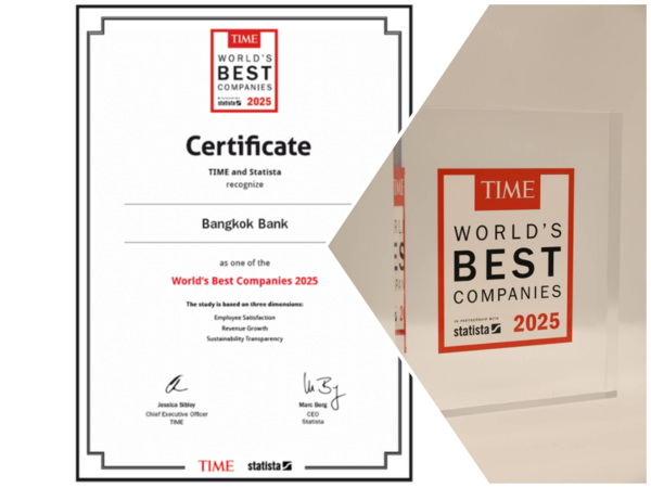 ธนาคารกรุงเทพ ปลื้ม! ติดอันดับบริษัทที่ดีที่สุดของโลก ปี 2025 นิตยสาร Time ธนาคารแห่งเดียวของไทย ในกลุ่มอุตสาหกรรม Banking and Financial Services ที่ได้รับเลือกเป็นปีที่ 2 ติดต่อกัน