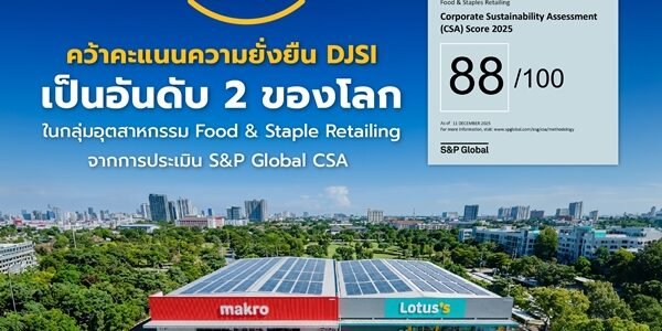 ซีพี แอ็กซ์ตร้า คว้าคะแนนความยั่งยืน DJSI 88/100 เป็นอันดับ 2 ของโลก ในกลุ่ม Food & Staples Retailing จากการประเมิน S&P Global CSA ตอกย้ำผู้นำด้านความยั่งยืนค้าส่งค้าปลีกไทย