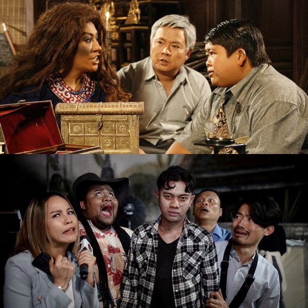 เริ่มต้นด้วยภาพยนตร์ “บ้านผีเปิบ” เวลา 08.30 น. พบเรื่องราวสยองปนฮาในหมู่บ้านดอยผีเปิบที่ต้องเผชิญกับ ผีเปิบ (จอย ชวนชื่น) ผีที่ออกอาละวาดกินของสดทุกอย่าง จนชาวบ้านเดือดร้อนถึง อบต.สมโภช (จตุรงค์ มกจ๊ก) และ เจ้าแม่ตะโกดำ (อาภาพร นครสวรรค์) แต่ก็ปราบไม่ไหว ก่อนส่งต่อเสียงหัวเราะช่วงเย็นกับ “โกยเถอะโยม” เวลา 18.30 น. พบ “ผีเด็กเร่ร่อน” (น้องพี มกจ๊ก) ที่ต้องการตามหาพ่อซึ่งไม่เคยพบหน้ากันมาก่อน แต่ด้วยความเหงาและอยากมีเพื่อน ผีเด็กจึงชอบปรากฏตัวให้ผู้คนได้เห็นอย่างซุกซน