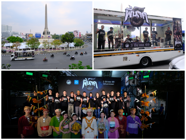 ภาพยนตร์ “พี่นาค5” ของค่าย ไฟว์สตาร์ โปรดักชั่น ที่มาแถลงข่าวเปิดตัวภาพยนตร์ด้วยกิมมิคสุดเก๋ ณ ลานวิคตอรี่พอยท์ พร้อมยกขบวนเหล่านักแสดงนำขึ้นรถแห่พี่นาคสุดยิ่งใหญ่ถือฤกษ์ดีวนรอบอนุสาวรีย์ชัยสมรภูมิ
