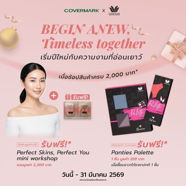 หรือเมื่อช้อปสินค้า WACOAL ครบ 2,000 บาทขึ้นไป/ใบเสร็จ รับ Gift Voucher เพื่อนำไปลงทะเบียนรับสิทธิ์ Mini Workshop เทคนิคการปกปิดฝ้า กระ และจุดด่างดำ พร้อมรับ Skinbright Cream CC (ขนาดทดลอง) จำนวน 1 ชิ้น รวมมูลค่า 2,200 บาท ฟรี ! โปรโมชันเริ่มตั้งแต่วันนี้ – 31 มีนาคม 2569 เฉพาะเคาน์เตอร์ COVERMARK และ WACOAL สาขาที่ร่วมรายการ ของสมนาคุณมีจำนวนจำกัด และขอสงวนสิทธิ์การเปลี่ยนแปลงเงื่อนไข โดยมิต้องแจ้งให้ทราบล่วงหน้า
