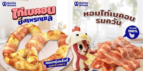 อานตี้ แอนส์ (Auntie Anne’s) ผู้นำตลาดซอฟท์เพรทเซล บริหารงานโดย บริษัท เซ็นทรัล เรสตอรองส์ กรุ๊ป จำกัด (ซีอาร์จี) เดินหน้าสร้างสีสันตลาดต่อเนื่อง เปิดตัวเมนูใหม่ในกลุ่ม Savory กับ “ไก่เบคอนชีสเพรทเซล” เพื่อตอบโจทย์ผู้บริโภคที่มองหาประสบการณ์รสชาติที่เข้มข้นและแตกต่าง โดยผสานความหอมรมควันของเบคอนเข้ากับความเข้มข้นของชีสแบบจัดเต็มในทุกคำ