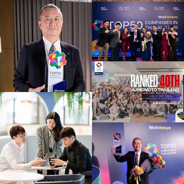 บริษัท อายิโนะโมะโต๊ะ (ประเทศไทย) จำกัด องค์กรชั้นนำระดับโลกด้านอาหารและโภชนาการ ภายใต้ปรัชญา “กินดี มีสุข (Eat Well, Live Well.)” สร้างอีกหนึ่งความภาคภูมิใจ ด้วยการคว้ารางวัล “Top50 Companies in Thailand 2026™” ติดอันดับที่ 40 บริษัทที่คนรุ่นใหม่อยากร่วมงานด้วยมากที่สุด โดย WorkVenture จากกว่า 720 องค์กรชั้นนำ ผ่านการสำรวจความคิดเห็นของกลุ่มคนรุ่นใหม่อายุ 22–35 ปี ในเขตกรุงเทพฯ และปริมณฑล นับเป็นปีแรกที่อายิโนะโมะโต๊ะได้รับรางวัลอันทรงคุณค่านี้ สะท้อนถึงความสำเร็จในการปรับตัวขององค์กรให้สอดรับกับโลกการทำงานยุคใหม่ โดยให้ความสำคัญกับ Well-being ของพนักงานอย่างรอบด้าน ควบคู่ไปกับโอกาสในการเติบโตในสายอาชีพ และการสร้างประสบการณ์การทำงานที่มีความหมาย