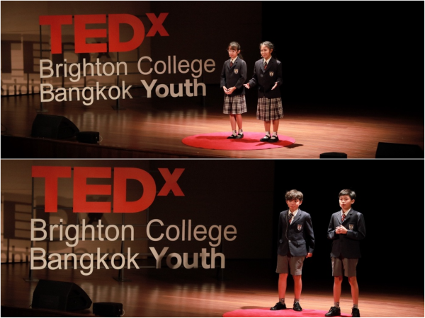 เมื่อเดือนมกราคมที่ผ่านมา นักเรียนระดับชั้น Year 5 และ 6 จำนวน 17 คน ของโรงเรียนนานาชาติไบรท์ตัน คอลเลจ กรุงเทพฯ ได้ขึ้นเวทีงาน TEDxYouth ครั้งแรกของโรงเรียนอย่างมั่นใจ นับเป็นประสบการณ์ที่น่าประทับใจและน่าภาคภูมิใจอย่างยิ่งายใต้การดูแลของคุณ Siobhan Wyper (Head of the Preparatory School) และคุณ Sara Bennett (Assistant Head of Pupil Development) นักเรียนอายุระหว่าง 9-11 ปี ได้ผ่านกระบวนการค้นคว้า วิเคราะห์ และพัฒนาแนวคิดอย่างต่อเนื่องตลอดหลายเดือน ก่อนจะก้าวข้ามความกังวลและพัฒนาความมั่นใจ เพื่อถ่ายทอดมุมมองและแรงบันดาลใจของตนเอง