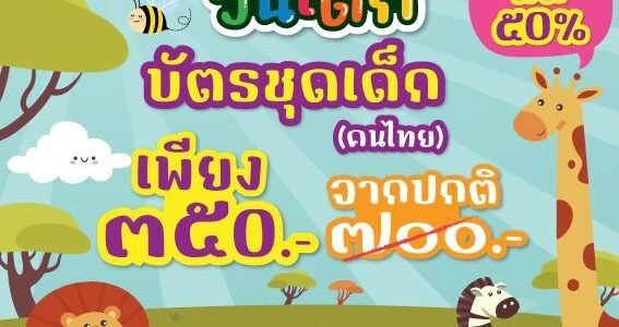 ซาฟารีเวิลด์ชวนน้อง ๆ หนู ๆ และครอบครัวร่วมฉลองวันเด็กแห่งชาติ 2569 กับโปรโมชั่นพิเศษ 1 ปีมีครั้งเดียว ด้วยบัตรเข้าชมแบบรายวันสำหรับเด็ก (คนไทย) ลด 50% จากราคาปกติ 700 บาท เหลือเพียง 350 บาท